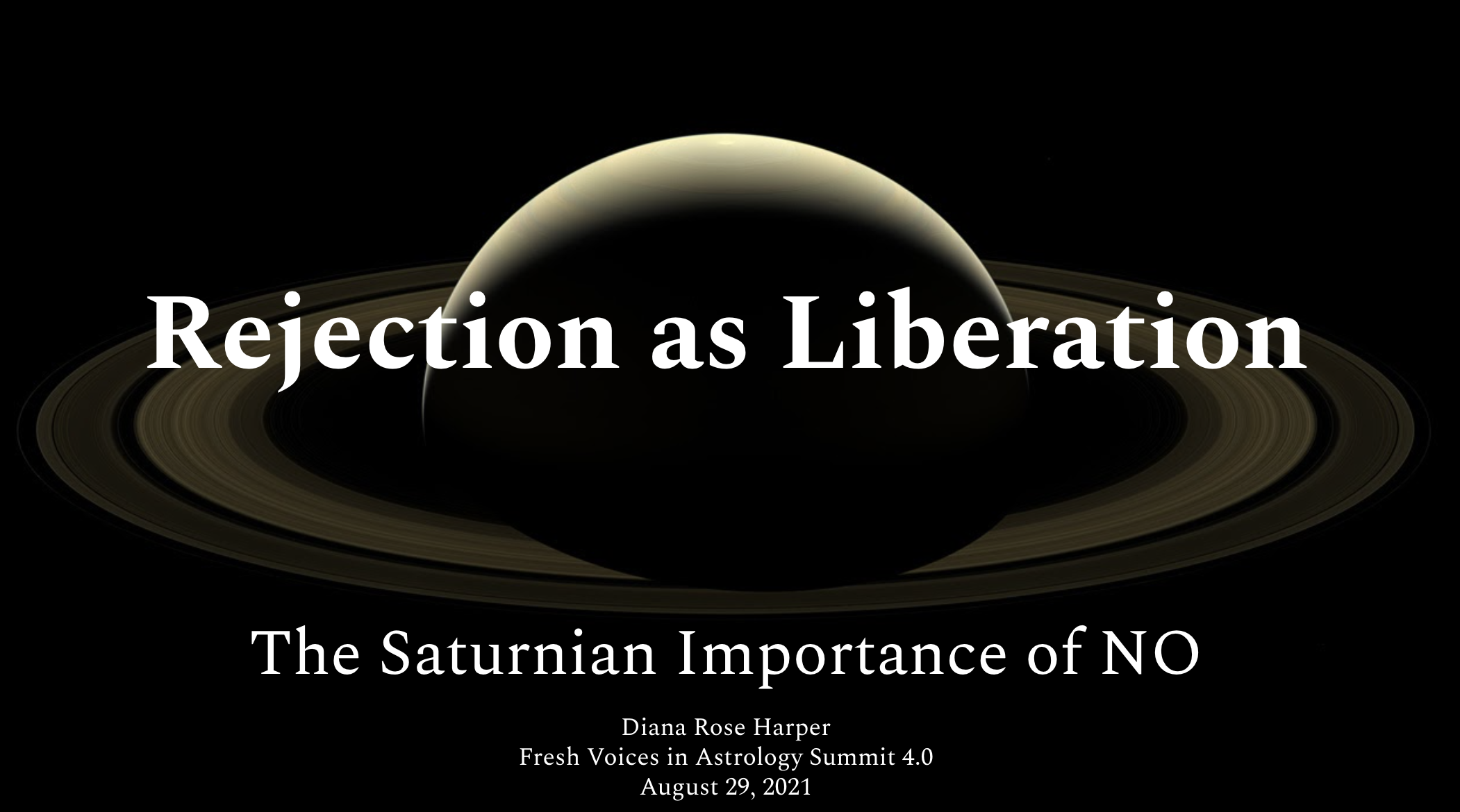 REJECTION AS LIBERATION: THE SATURNIAN IMPORTANCE OF NO, originally presented at Fresh Voices in Astrology 2021